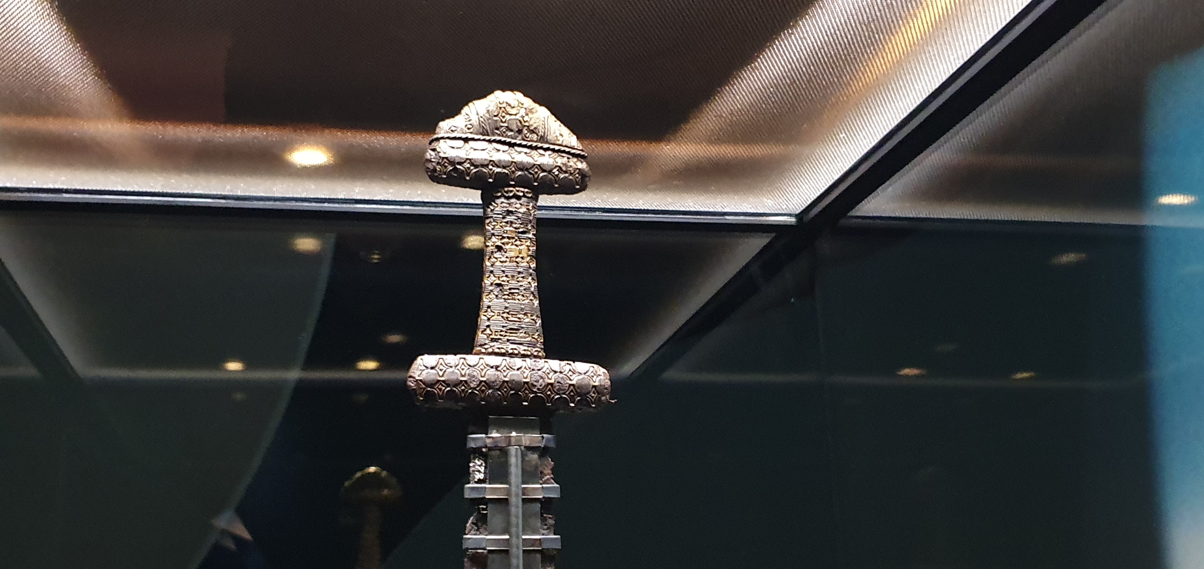 Men arkeoloig är och har alltid varit historia och historia bygger till stor del på arkeologi.De senaste åren har detta blivit mer vedertaget... till vår stora glädje. Bilden till vänster visar ett vikingasvärd som kan beskådas på National museum i Köpenhamn.