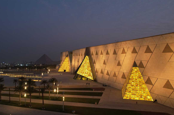 Detta är världens största museum skapat för att visa och informera om en kultur och är 500 000 kvadratmeter stort. Det innehåller Egyptens mest värdefulla skatter och har kostat 10 miljarder kronor att bygga… efter många års vänta kan vi nu besöka det. Museet är placerat i Kairo med utsikt över pyramiderna. Se bilden nedan.